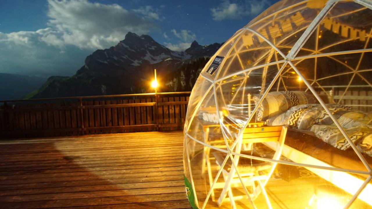 Die Bubble-Suite bietet Platz für zwei Personen und ist mit einem kuscheligen Doppelbett mit Kissen & Decken ausgestattet. Dieses besondere Himmelbett ist ganz unter dem Motto "Fünf Billionen Sterne Suite" eingerichtet. Die Toilette der Bergstation (öffentlich) kann mitbenutzt werden. Es gibt auch eine Feuerstelle mit Feuerholz in unmittelbarer Nähe. Als besonderes Highlight empfiehlt sich eine E-Kutschenfahrt von Braunwald aus direkt zum Grotzenbüel.